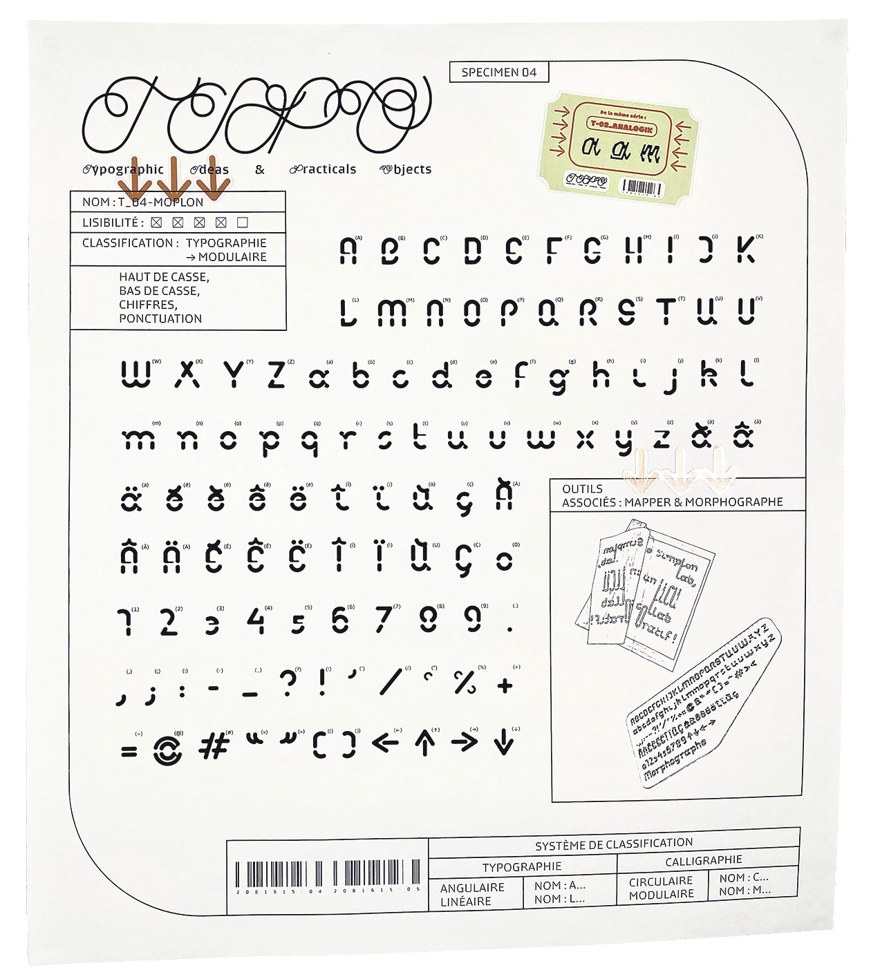 Le "Morphographe" et le "Mapper", quatième et dernier des 5 outils, sont associés à une typographie nommée Moplon (2022).